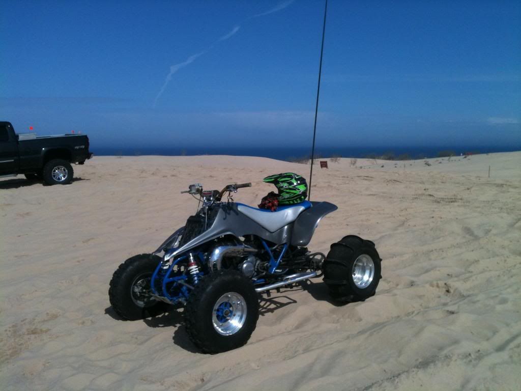 The sand was nice.  We were some of the first ones in the dunes on Saturday.  It's awesome hauling ass across sand that has no tracks in it.  I did lose another spark arrestor because I forgot to take it off after getting in.  I also lost a flag lol.  The mount on my grab bar broke off.  I still had a blast.  I will be back up there sometime this season.