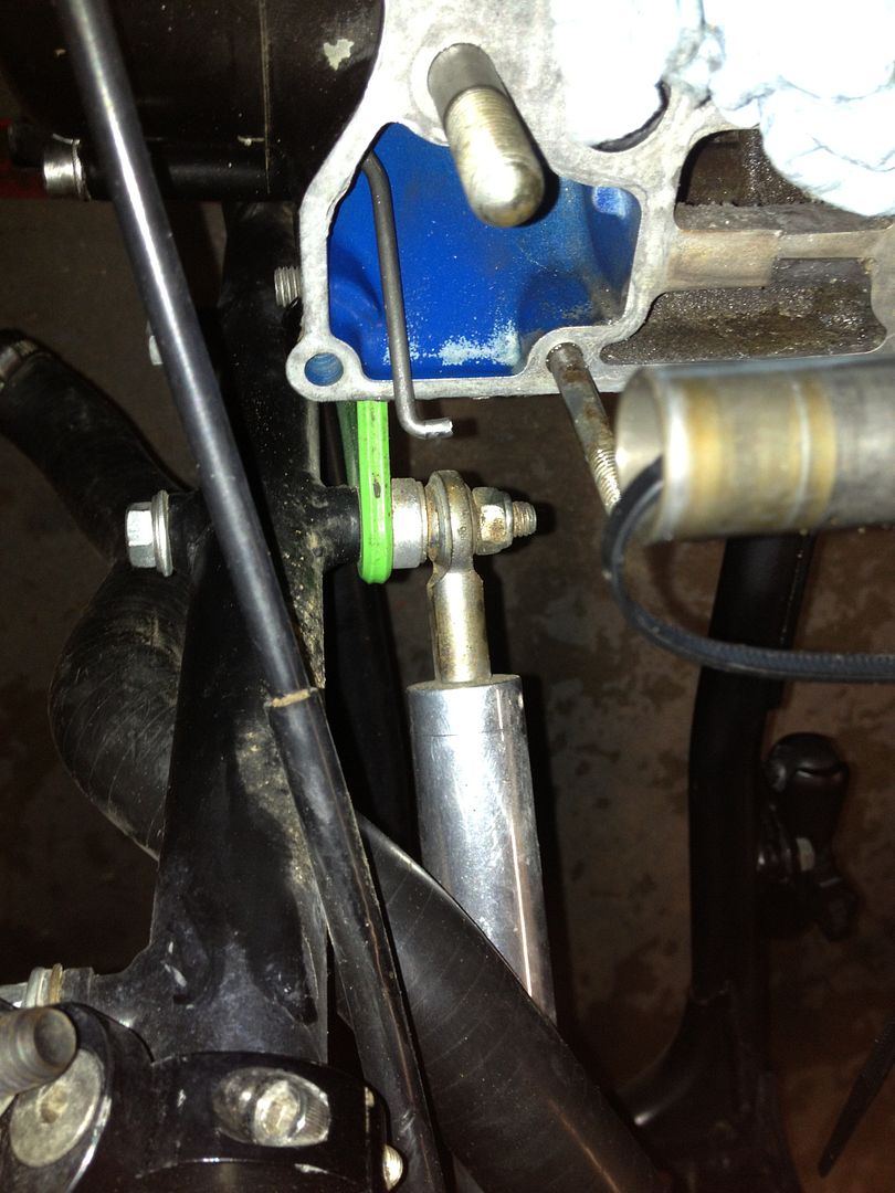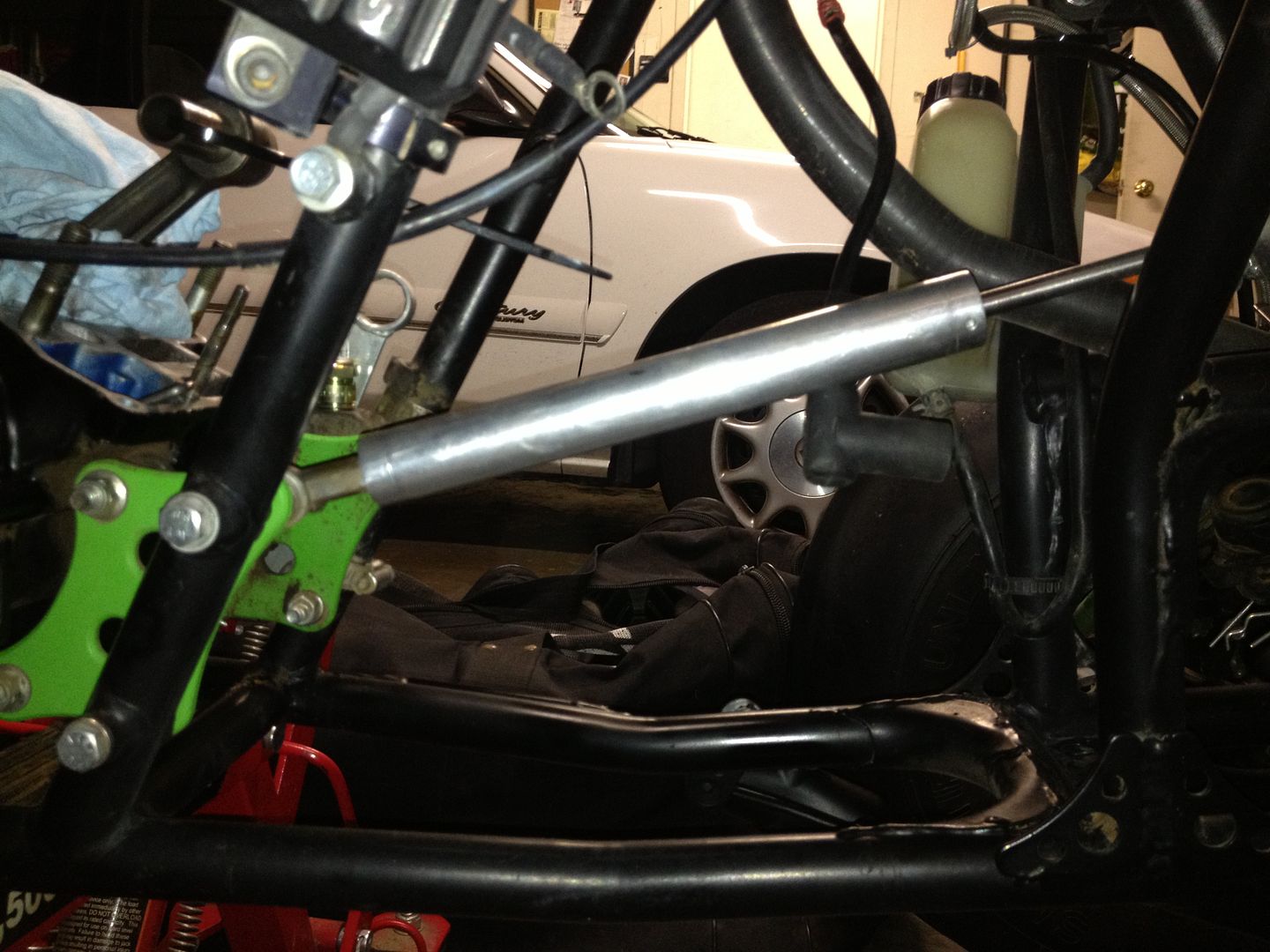 The rear mount is an aluminum plate that bolts to the motor mounts with a tab for the damper. The steering shaft required welding a tab on for the heim joint to mount to. I turned the bars full lock left, then tack welded the tab on the steering shaft then checked for proper clearance for the radiator then finished welding. Very simple. My Trx250r has mounts similar in design.