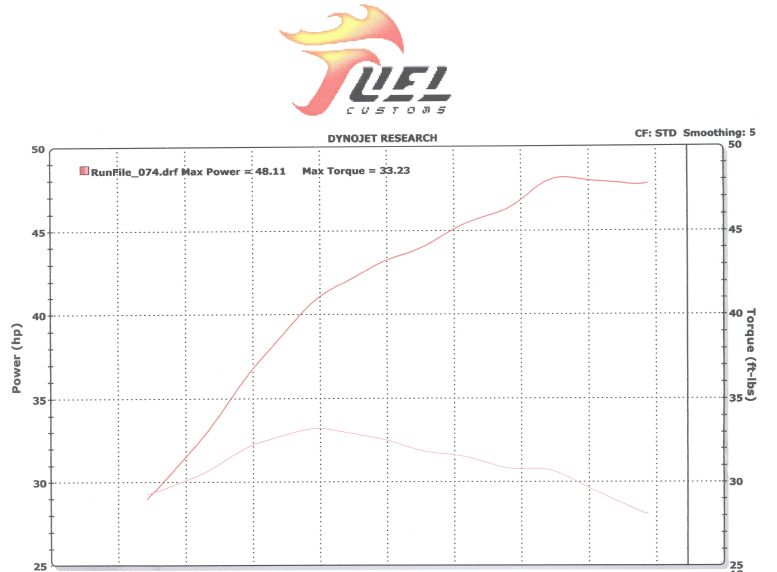 Fuel Custom Intake's Dyno, 2009 dyno test, 92 degrees F, Hetrick Racing Porting, Hetrick Cams, CP Racing 13.1:1 piston, Jardine RT99 Exhaust, FCI Intake, 50% 91 Pump Fuel / 50% VP 110, Bored 44mm Throttle Body, Power Commander III, Falicon Supercrank & Knife Edge Rod.