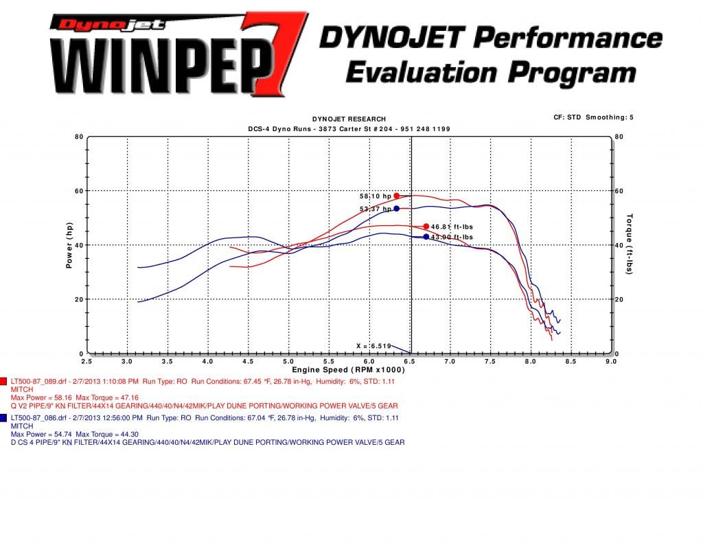 I have an  overall set up question as I am not familiar with your quad or Dales.  Looking at the difference between the two peak HP and Peak torque numbers there is quite a difference( no, Im not bagging on your quad mitch, Im sure its a strong runner)  What do you or dale think accounts for the 12ish HP difference?   Do  big reed motors just make more power,  Is it a difference in porting, carbs reeds?    Yours or Dales thoughts?