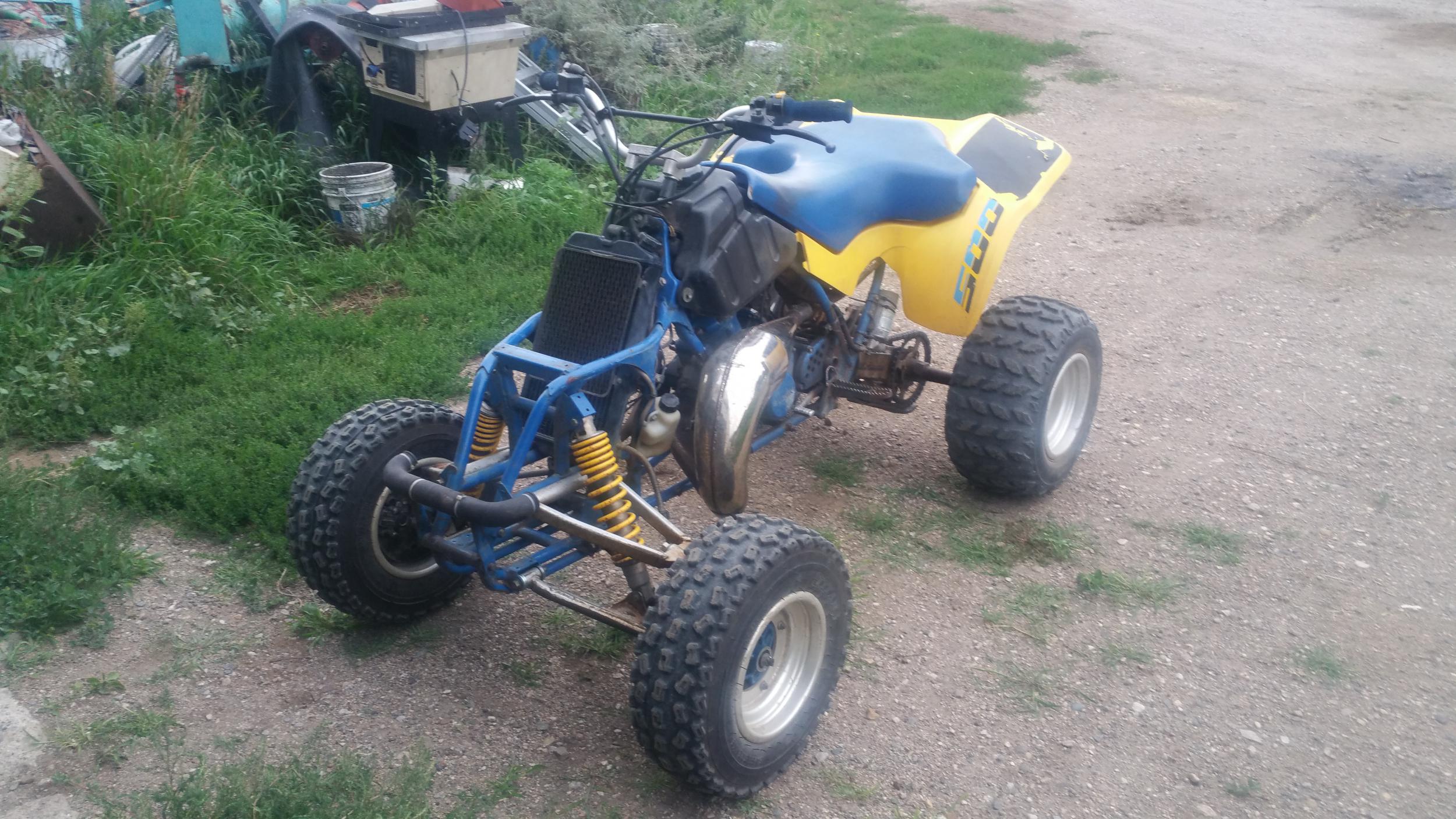Description: My new-to-me 87 zilla with dr. Q pipe. I do have the factory front plastics but they aren't cut yet.
