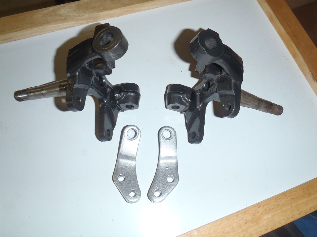 $45  Spindles, sand-blasted primed, and painted black, tie-rod end bracket PC'd silver sparkle w/ clear