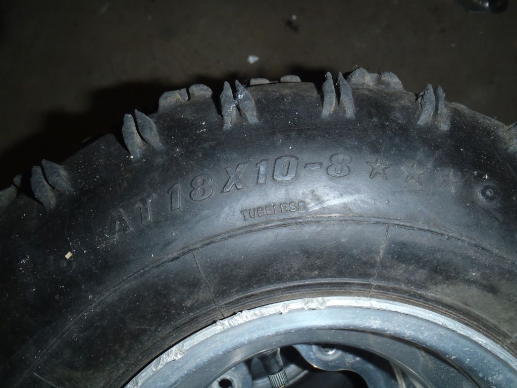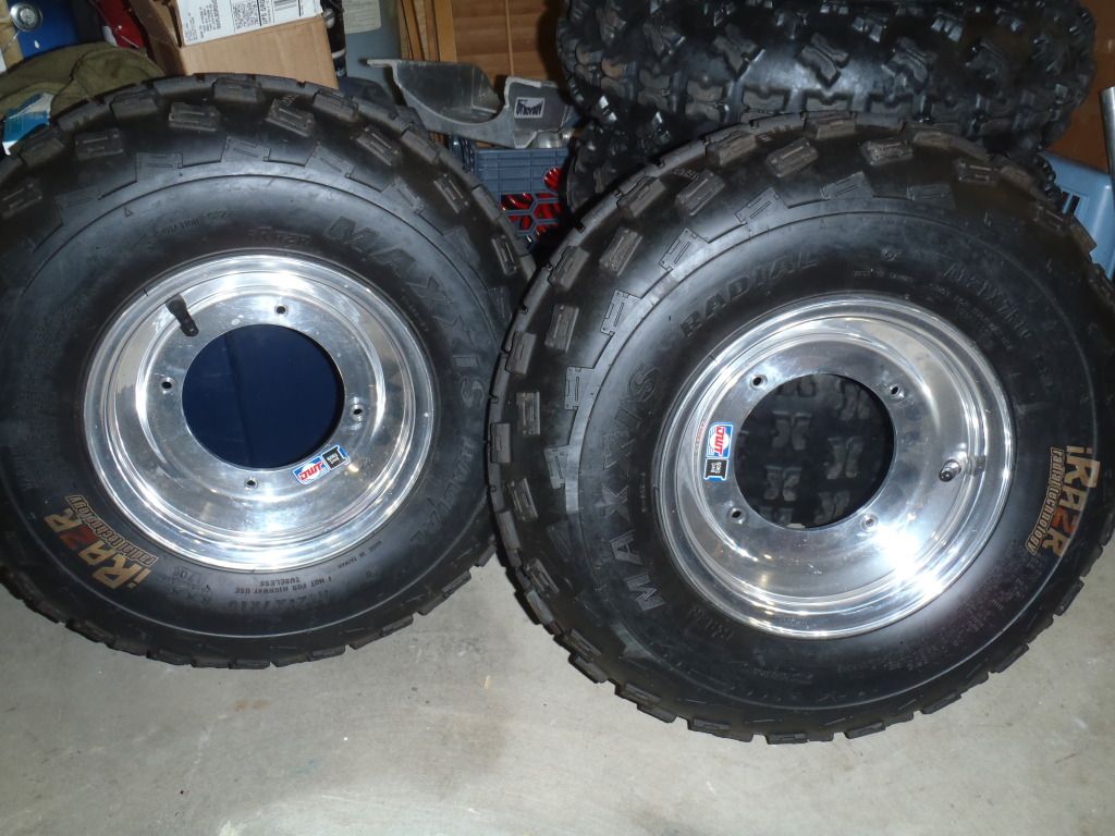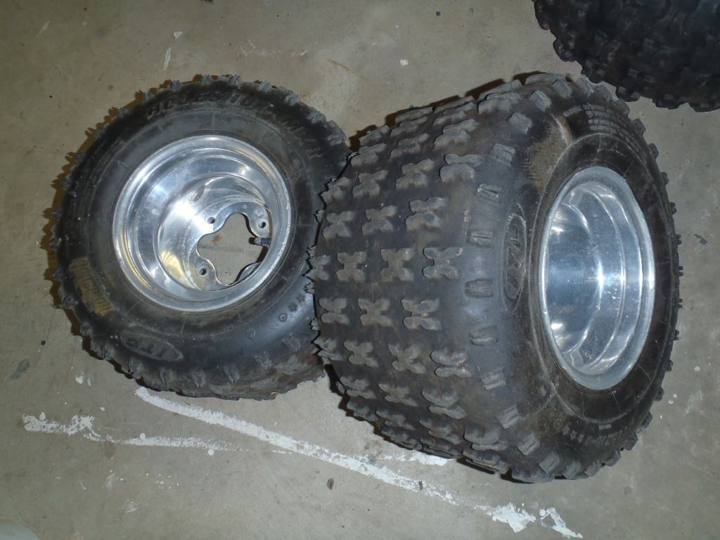 $70  8" rear ITP wheels (4/110 rear pattern), 18" Holeshot MXR tires (worn out)