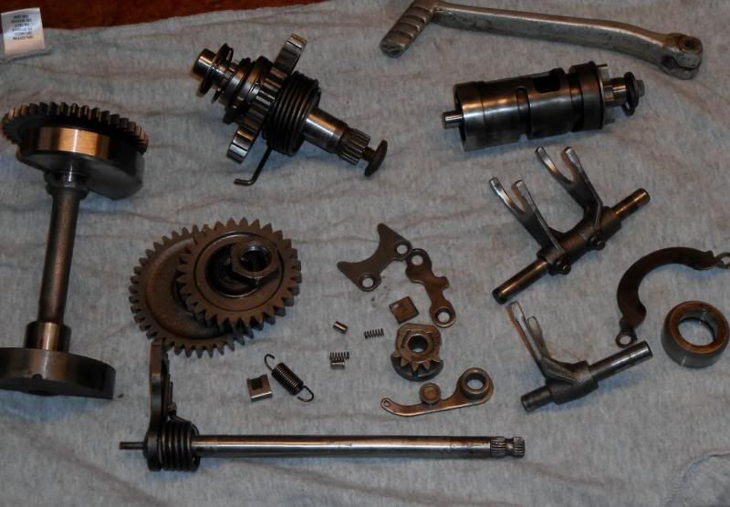 i'm going to start selling off my spare engine parts.  i have a good amount of 500, and 250 engine parts i'll probably never use.  so heres the first bunch of 500 trans parts.