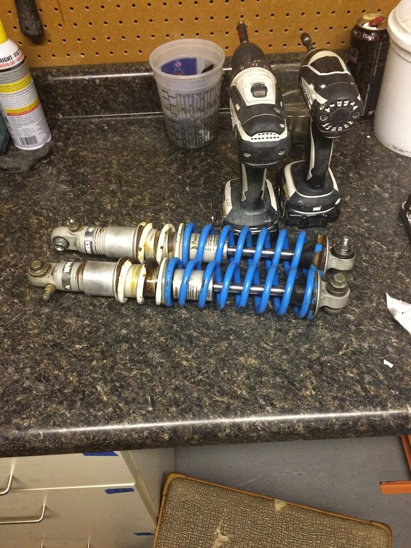 Rebuilt cleaned and re powdercoated springs. I went with white n yellow. Kept the works style white but the stock color yellow lower spring. I like them.