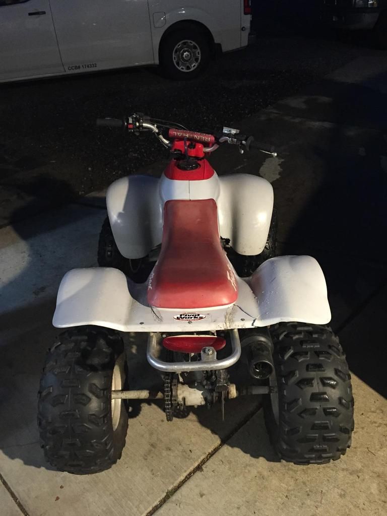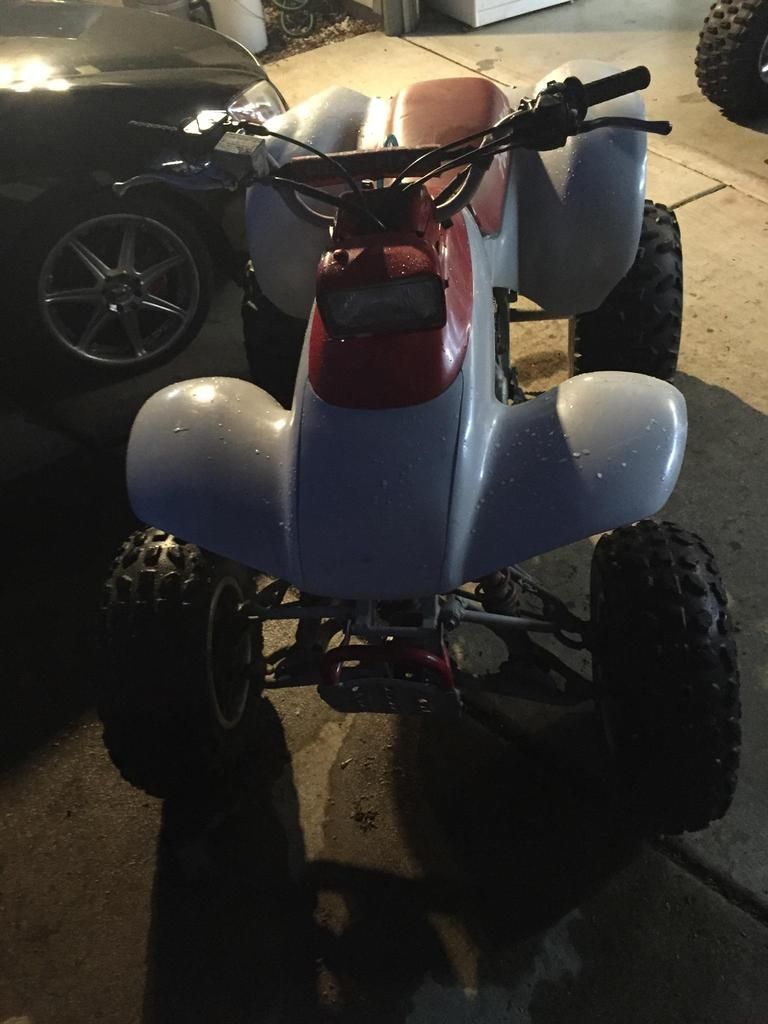 Swooped on another bike today.  1987 Honda 250x.  These bikes are pretty damn fast for what they are.  It straight eats my warrior 350 like nothing.  I wasn't able to get my warrior anywhere at sand lake, just the flats.  pointless.  My buddy has a 250x and I've seen him do just about everything at sand lake.  I am hoping to take my LT for a test ride soon. I need a valve stem in the rear paddle tire first tho.  Guess if anything else I could take the 250X.  It's a little cold blooded.  Probably just needs a little tune, carb clean, or a small step up on the pilot.  Time will tell.  Have a pee test in the morning then have to do a job for a customer (Front rear pads / rotors on a civic).  Maybe after that if the weather is still nice I will wash it at least and give it a once over.