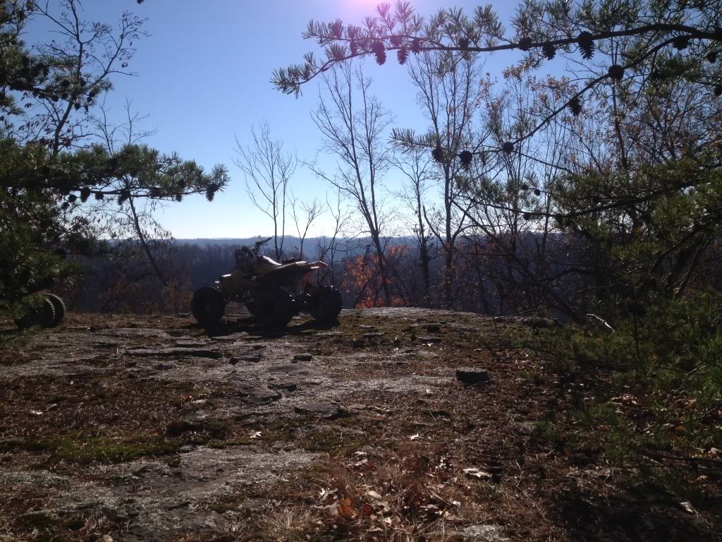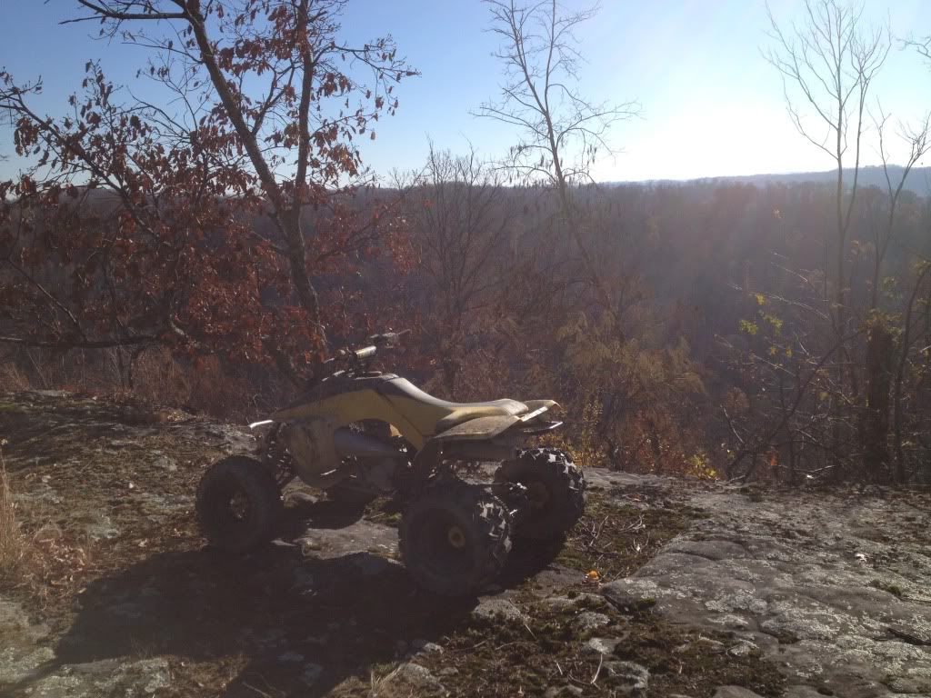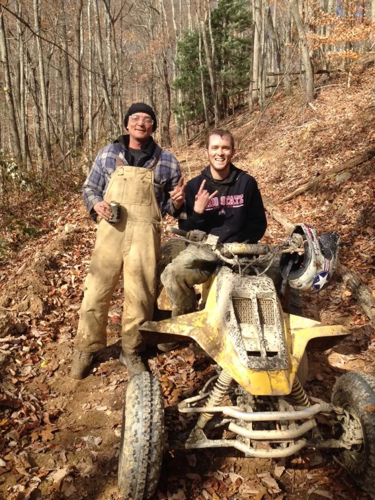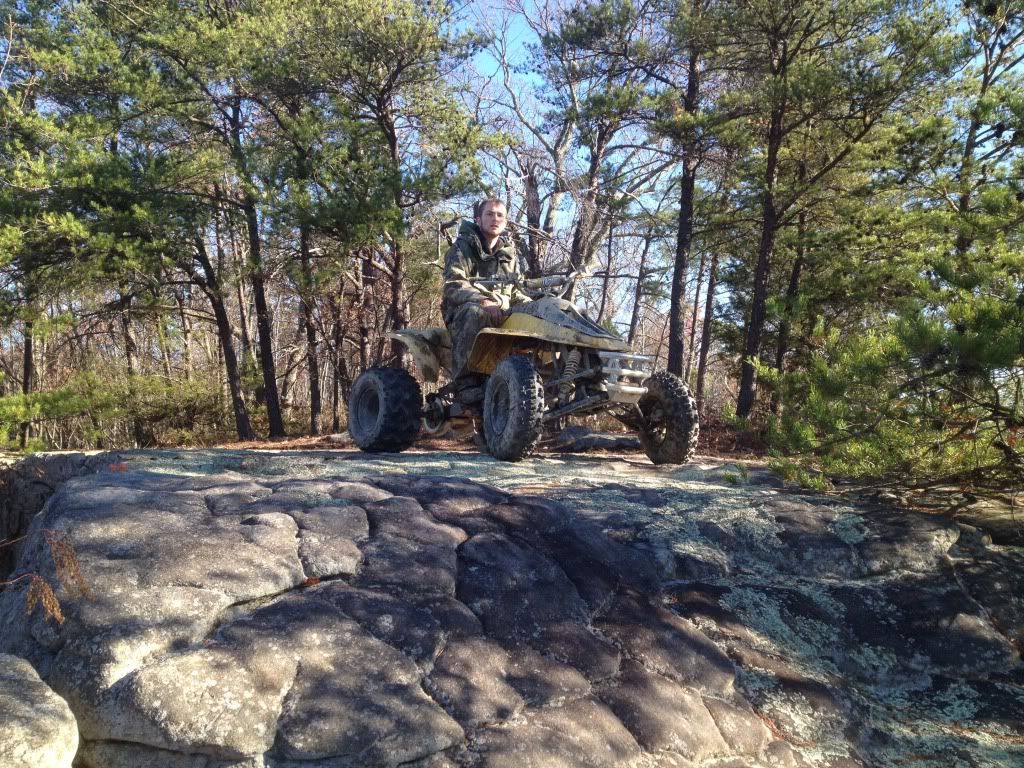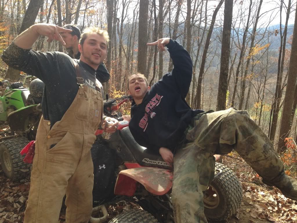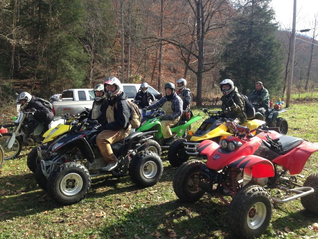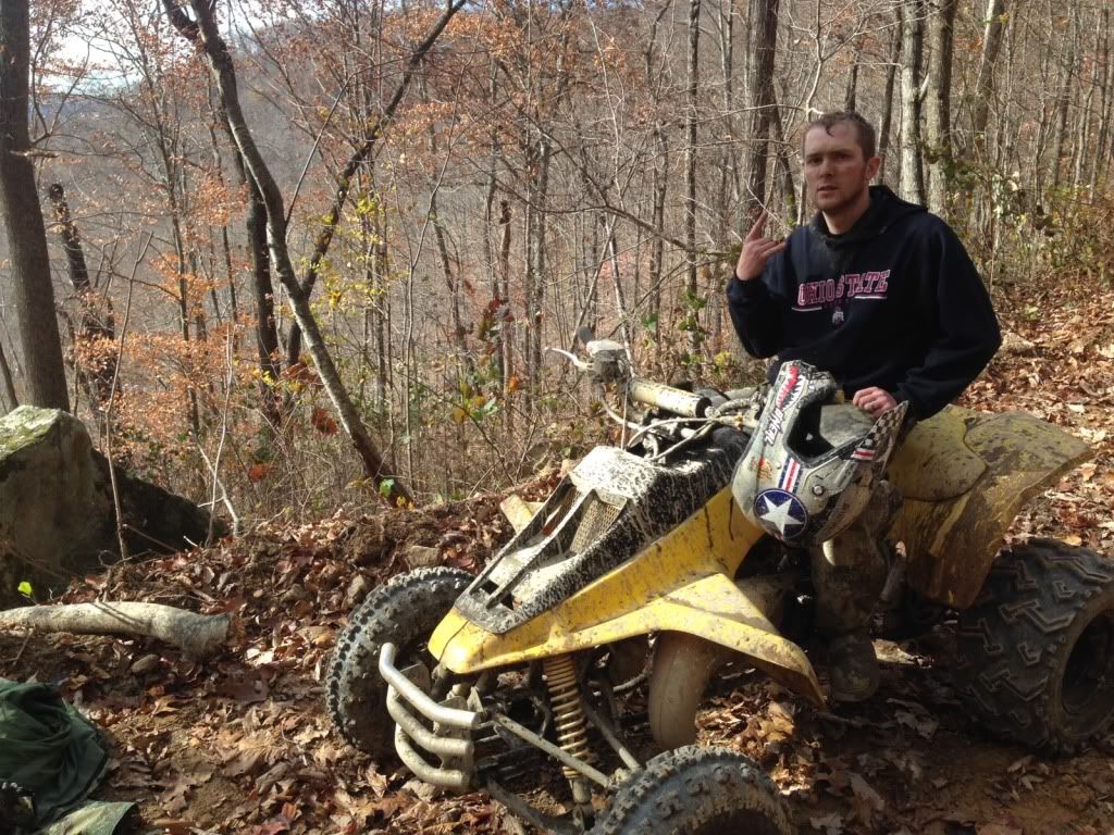 Damn what a weekend, took the 500 to Oneida KY in the middle of the Daniel Boone National Forest. Rode with a large group of mostly dirt bikes I was the only 2 stroke Atv. When we got to camp it was 9:30 Friday night and after unloading the 500 a crowd gathered it immediately got fired up and ripped through camp by a few friends. I was made several offeres to trade it for a 05 kicks start trx450r, a 400ex plus $2500, and a 06 yfz450r. We left camp Saturday morning around 9 am after I was requested to race a banshee (that broke during our 3rd race) a trx450r a ltr450 a ktm 300 dirt bike a yz450f a rm250 and a yz250. The Zilla went undefeated and none of the races were within 5-10 bike lengths. The 450's we're given a 5 bike length head start because they complained so much about how much gravel I blasted the banshee with, they still got blasted with gravel roost. All of this was supposed to have been recorded on a friends gopro none of it however was he accidentally hit the button twice so the video was 1 sec long after we uploaded it to the laptop big bummer!