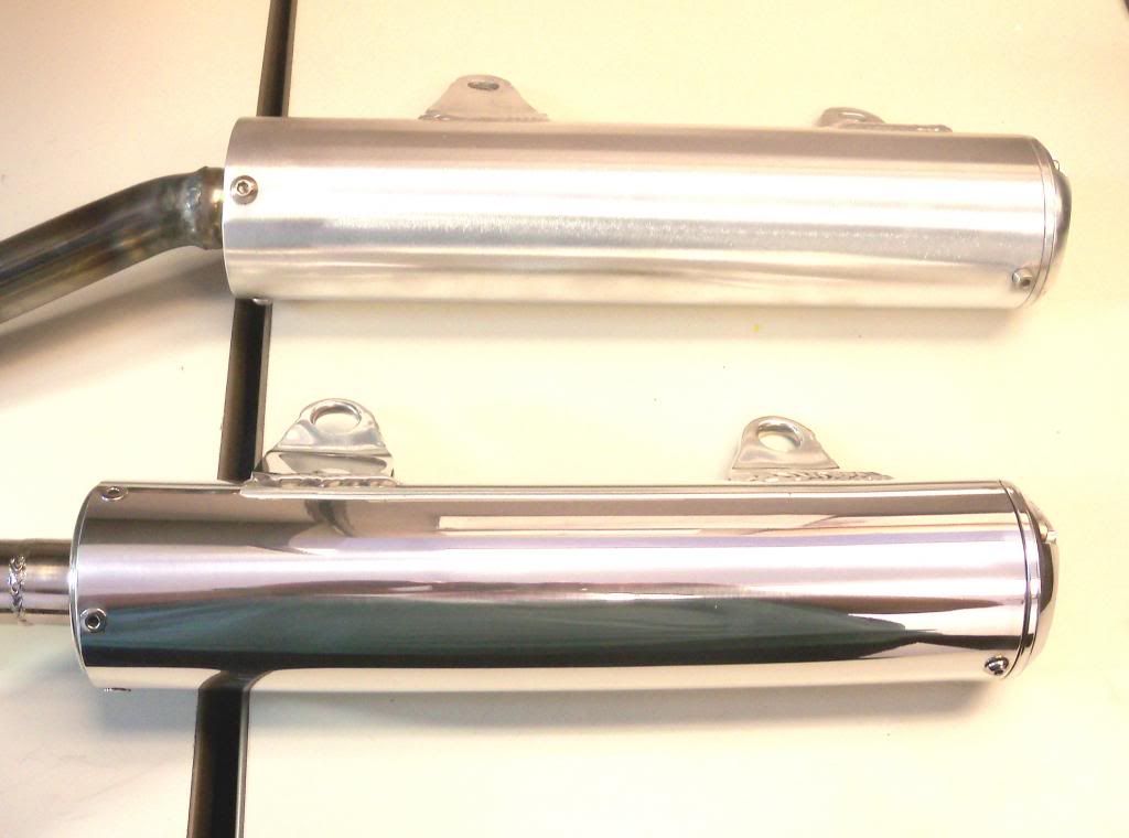 I am working with new platers and will have costing posted if you want Double Nickled or Triple Chromed (Pipe, Flange and Silencer End Pipe), Also the Silencer and End Cap can be polished but will have attentional cost, those prices will also be listed.