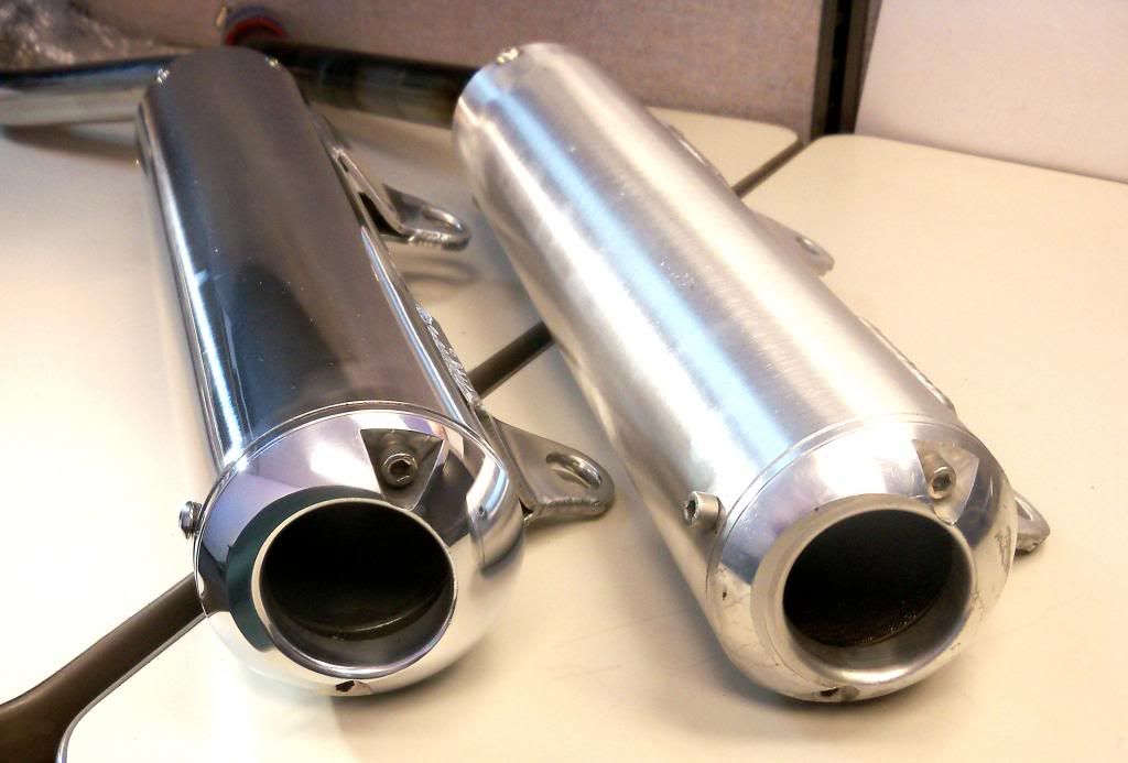The raw Pipe is Un-polished, Cost to polish is $40, here is the link to the SQ-HQ store for the Modified DCS-4 http://www.suzukiquadracerhq.com/index.php?action=store;cat=21