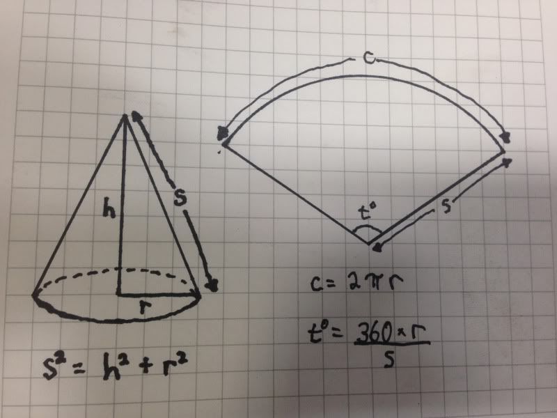 I didn't really think I was being a prick....I guess offering to help by posting up info on how to layout a cone is being a prick nowadays? All I was getting at is if you can't plug the numbers into these equations and solve for everything you need, then I'm not going to type out a big old math lesson. There are sights on the internet that can do a far better job than I can.