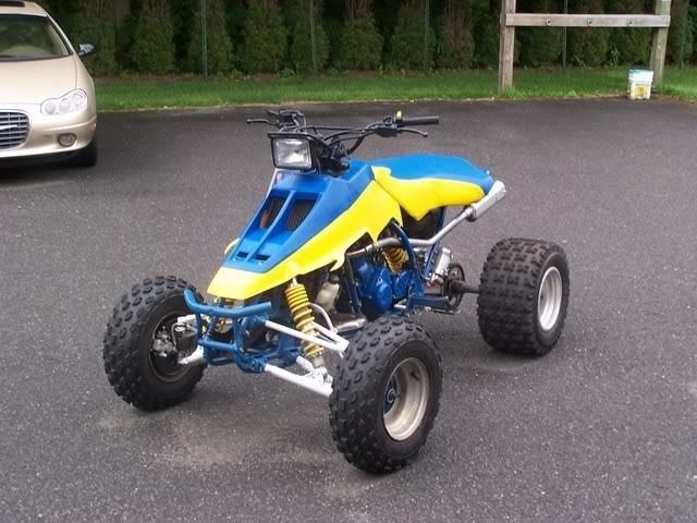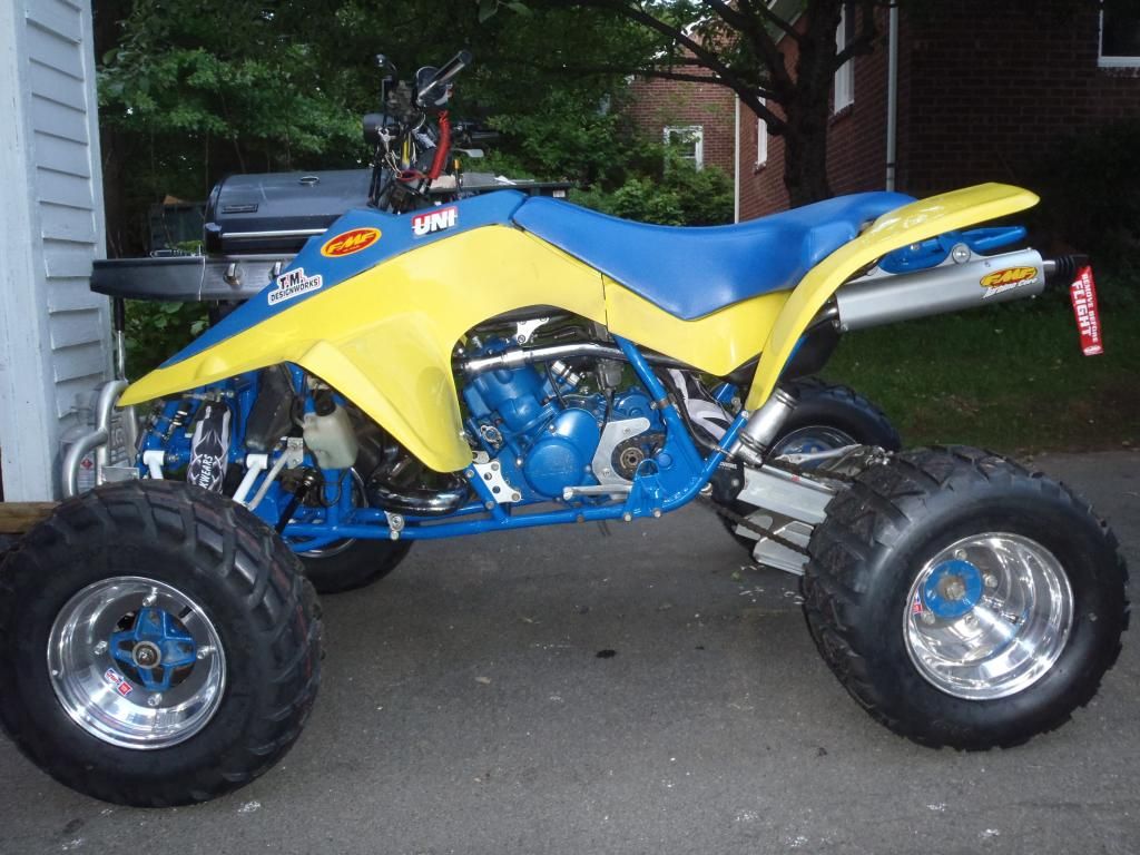 So I am about to buy back my old quadzilla. When I sold it in 04 to this guy it had a DG pipe on it (because thats what it had on it when I bought it. He purchased a trinity pipe for it but "didnt like the way it looked and didnt want to cut the plastic" so he bought an FMF. He had the motor rebuilt and didnt know how to jet it right so I am going to have to jet it either way. I am picking it up Saturday with the FMF on it, and a brand new in the box Trinity pipe.